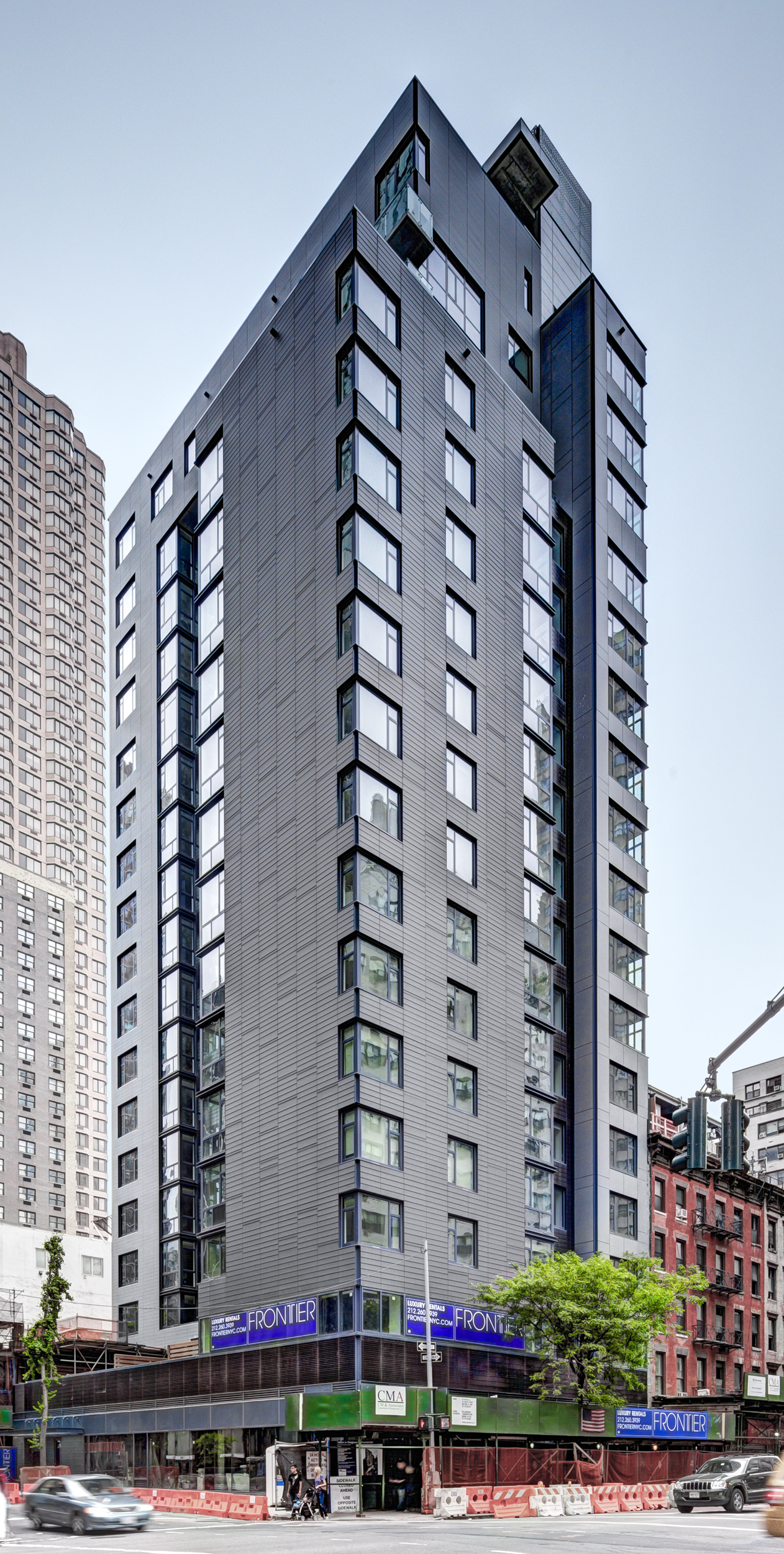 This 18-story mixed-used building located on the corner of 39th and 3rd avenue will have commercial space on the cellar and first floors and 91 inclusionary to market rate rental units above. The building will feature a terra cotta and cement panel rain screen façade easily distinguishing it from the surrounding buildings. The street-level amenities include an elegant lobby, fitness center, corridors with plush carpets and decorative lighting. Each rental unit will receive custom kitchens, modern bathrooms, as well as plenty of natural light with several private and public roof terraces.